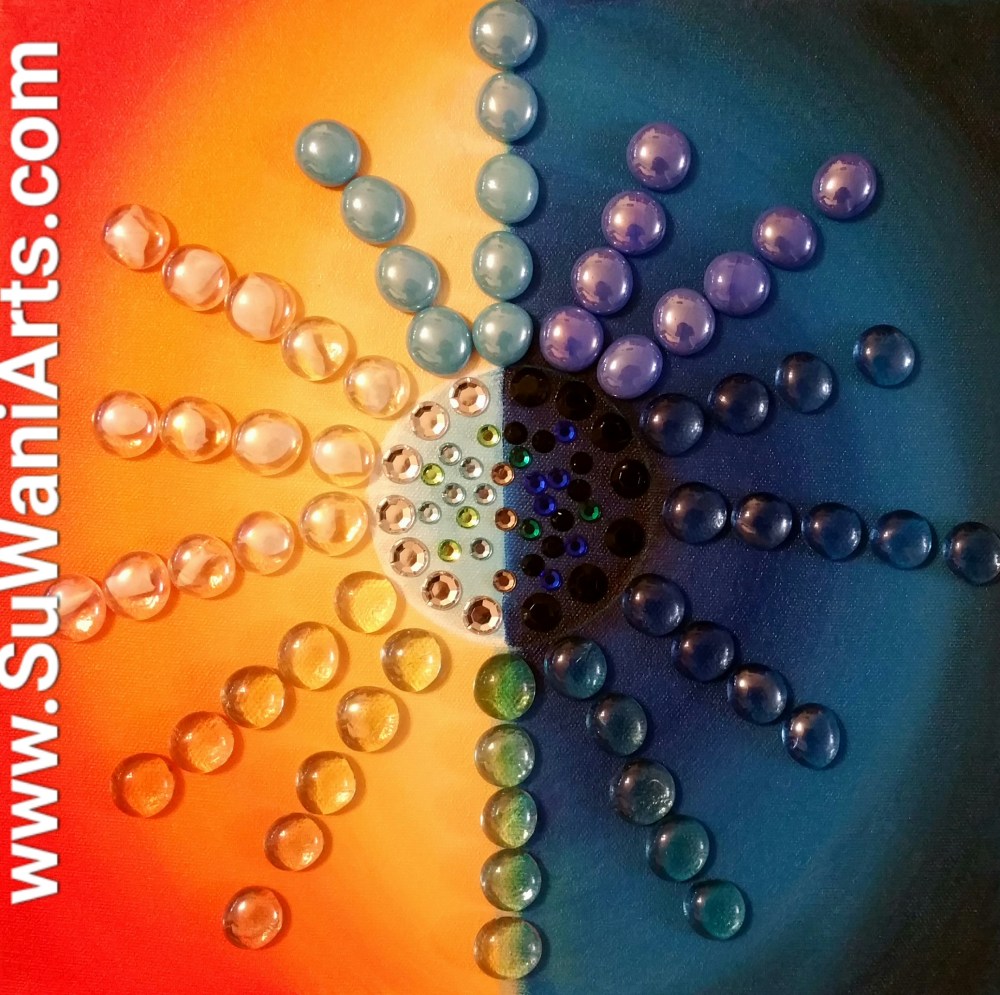 Mixedmedia artwork using Acrylic paint, Beads and glass pebbles on 12’X12′ Canvas.