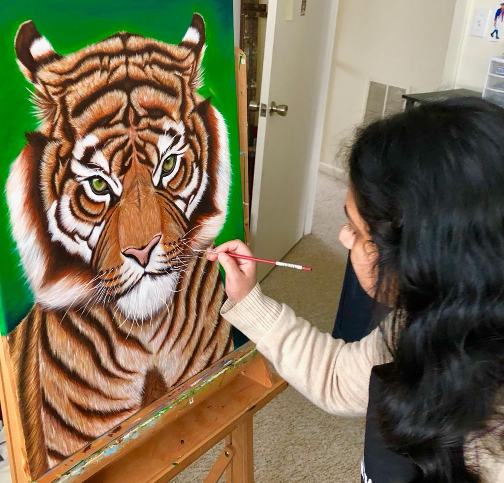 I finished my tiger around 2:30 pm on 13th Feb, filled up my inventory sheet and the painting was at gallery by 3:30 pm. Soon after that I rushed to start my kids art class up-till 6 pm. Did my last minute packing till night 12:45 am. Next day morning we caught bus at 7 am. When I looked back I realized that I can never forget my experience of past three days. Staying focused and confident one can achieve any goal.