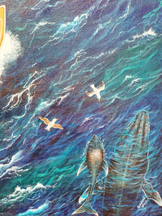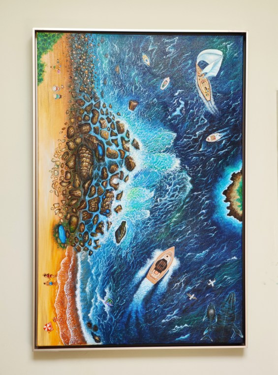 One sleepless night, an idea knocked my head … what if I take the “creativity freedom” little further and include all the significant elements of coastal life in one canvas. Next day my family and artist friends warned me not to throw myself in this super challenging adventure. The signal I received from them encouraged me more to push my boundaries towards that adventure and by end of the following day I was determined to start working on my idea.
